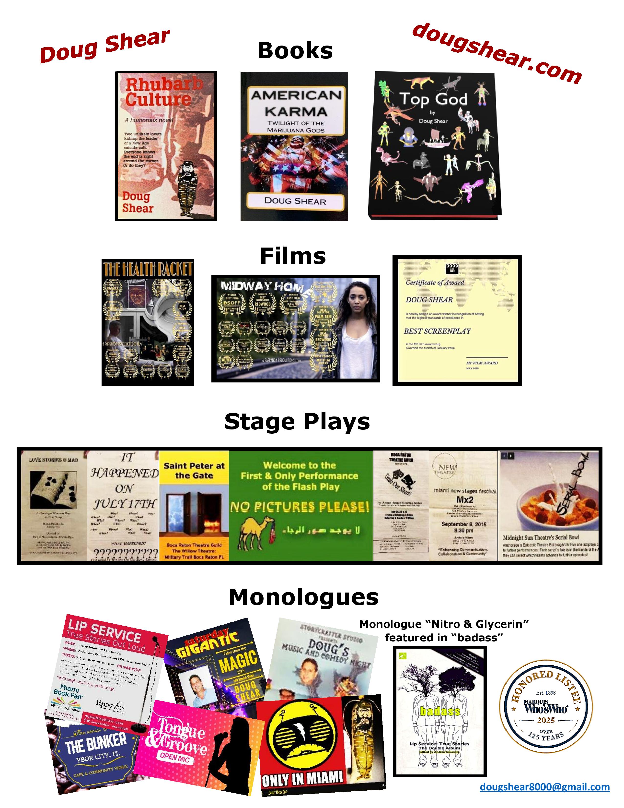 Acclaimed author and film writer Doug Shear has been named to Marquis Who’s Who in America, a prestigious publication that recognizes individuals who have demonstrated outstanding achievement and leadership in their respective fields.
